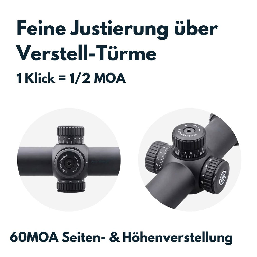 - Verstellung: 1/2 MOA