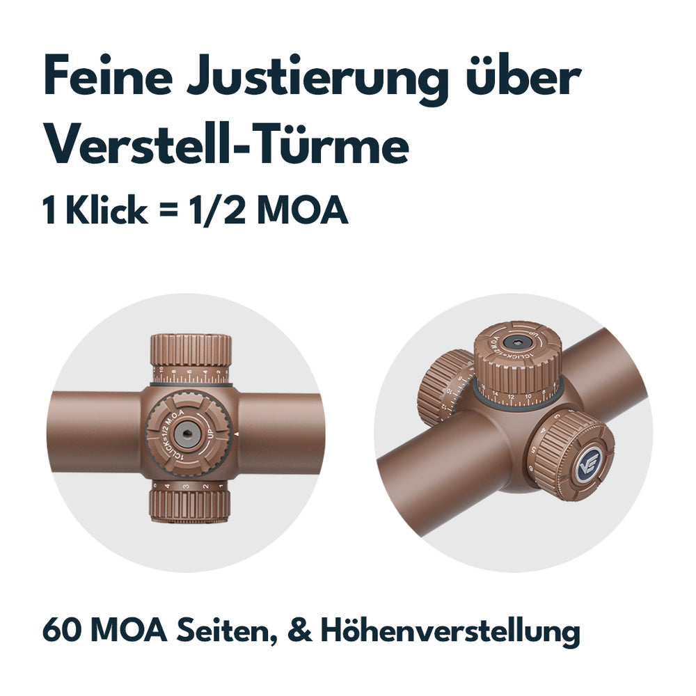 - Turmfeature: Turret Lock System (ziehen zum verstellen, drücken zum arretieren)