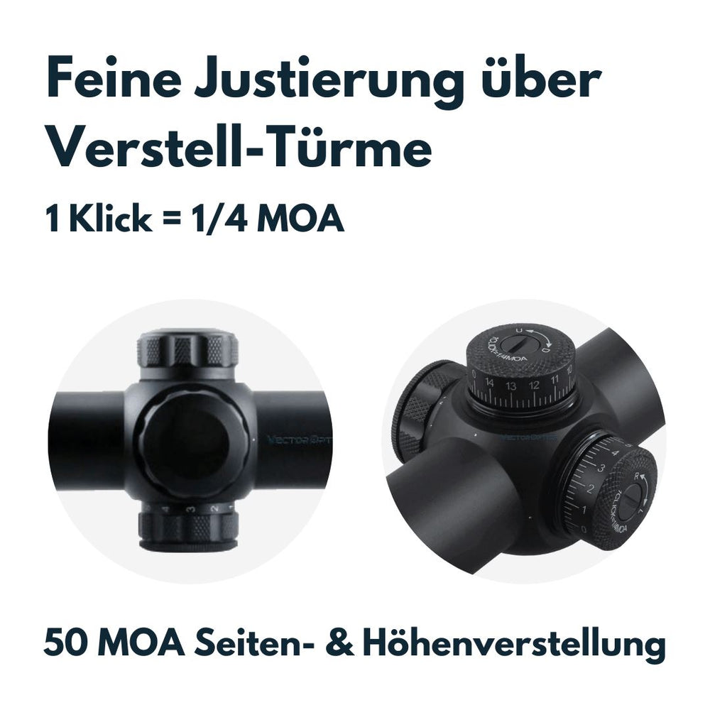 - Verstellung: 1/4 MOA