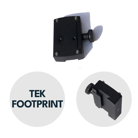 ALLE ANSEHENDer TEK Footprint ist ein spezielles Montagesystem, das entwickelt wurde, um eine einfache und sichere Befestigung von Leuchtpunktvisieren zu gewährleisten. Es handelt sich um eine präzise gefertigte Montageplattform, die speziell für eine Vielzahl von Visiermodellen ausgelegt ist. Die Montage sorgt für eine exakte Passform, was für eine bestmögliche Leistung Ihres Visiers unerlässlich ist.