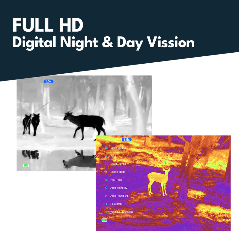 Wärmebild Monokular mit 256x192@12μm Detektor, 1.5-3.0x Digitalzoom und 0.4" FLCOS Vollfarbbildschirm mit 1280x960 Pixel. Ausserdem verfügt das Gerät um Wifi und Bluetooth um das Handy zu verbinden für Foto oder Video Aufnahmen und einem Bild in Bild Modus.