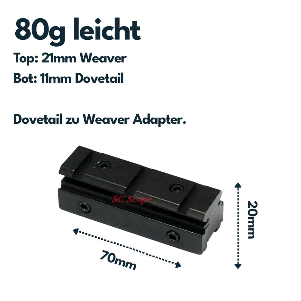 Schienenadapter von 11mm Dovetail zu 21mm Weaver