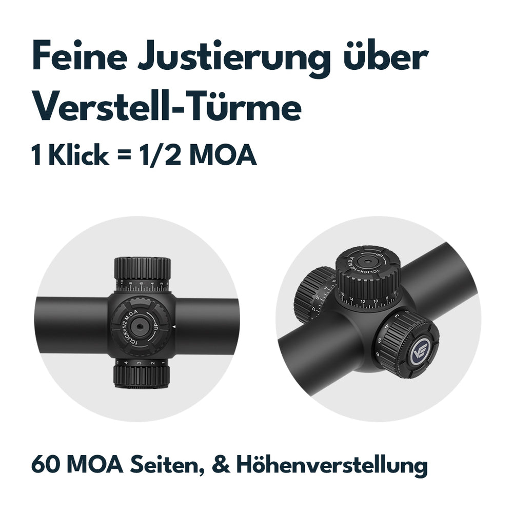 - Turmfeature: Turret Lock System (ziehen zum verstellen, drücken zum arretieren)