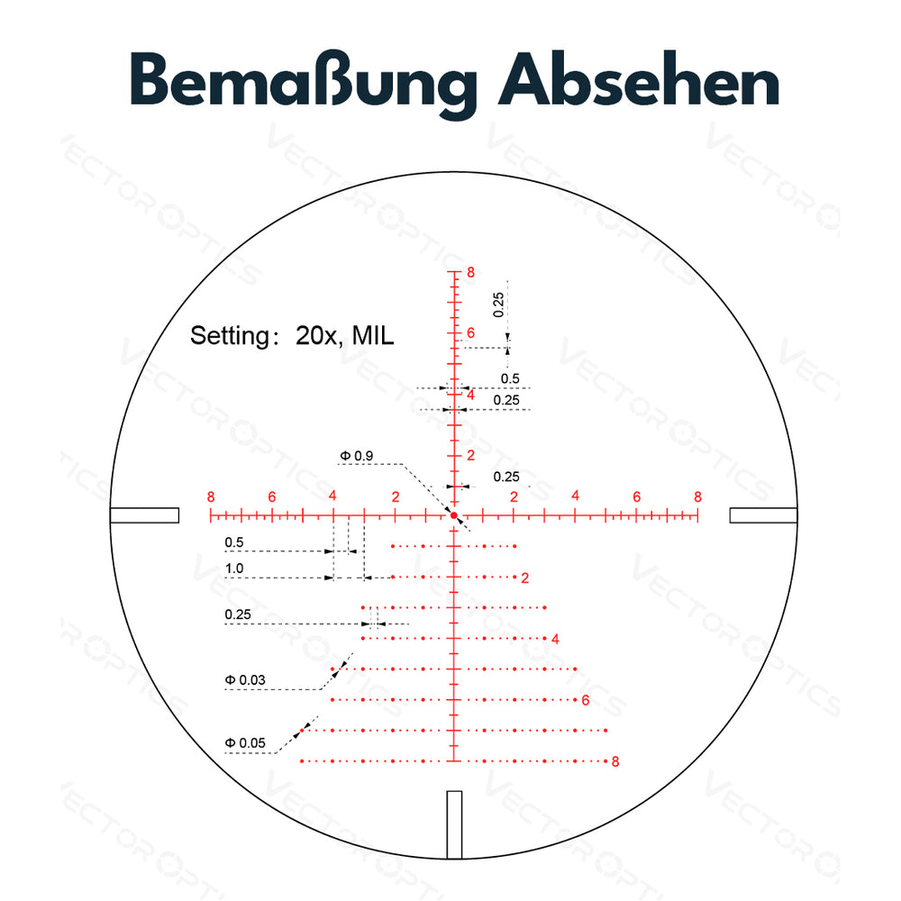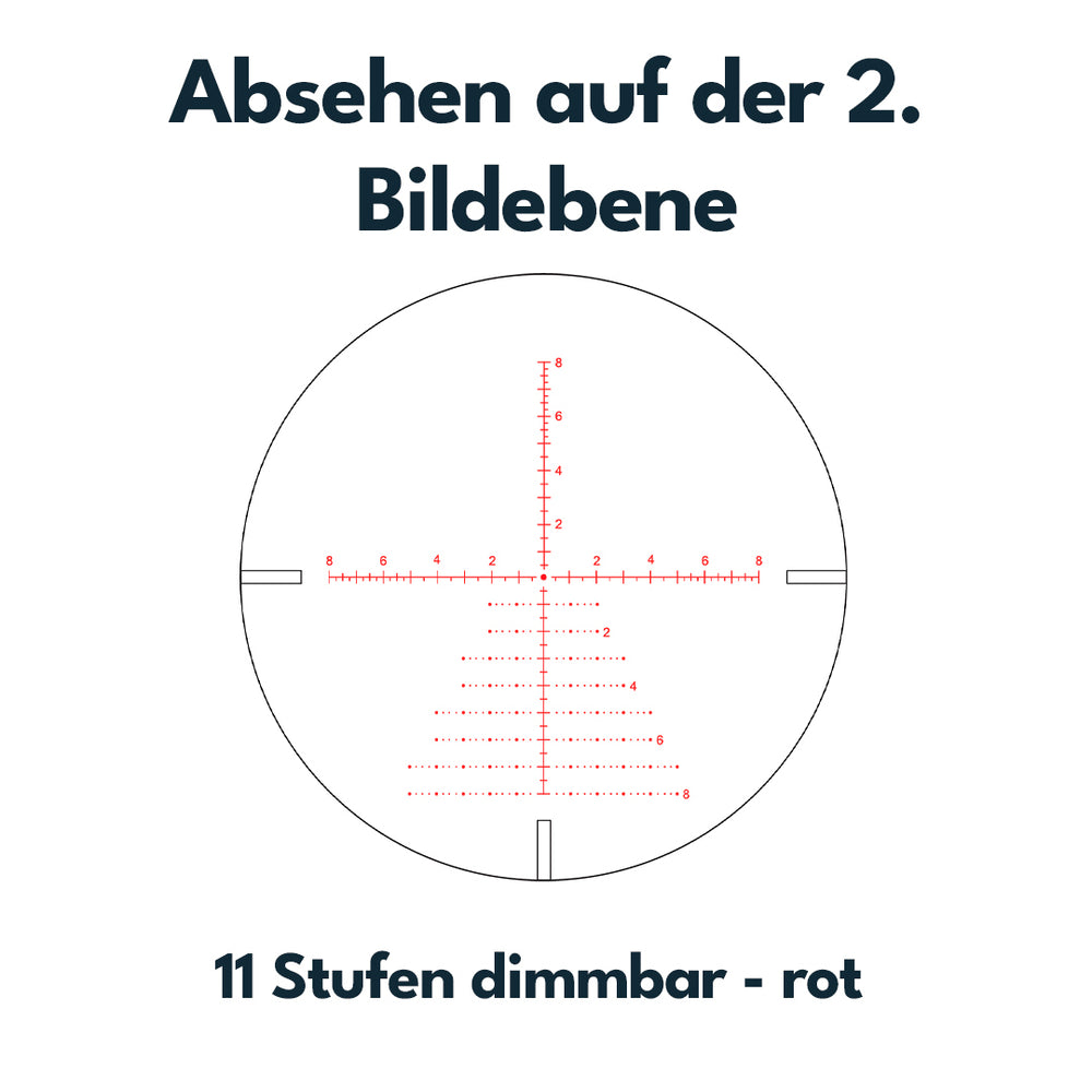- Verstellung: 0,1MRAD, 1/10MIL, 1cm