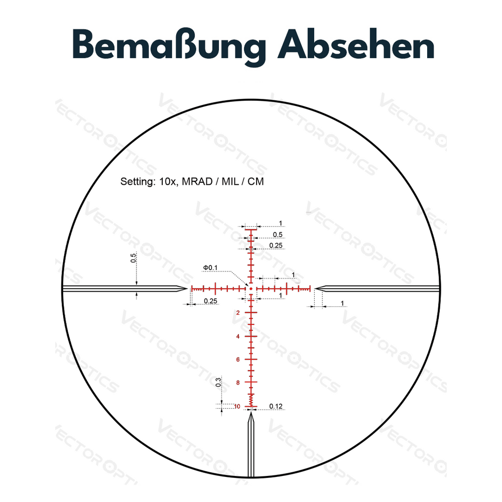 - Verstellung: 0,1MRAD, 1/10MIL, 1cm