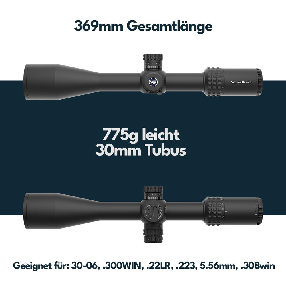 - Geprüft und Schussfest: .223, .300WIN, .308WIN, 30-06, 12GA
