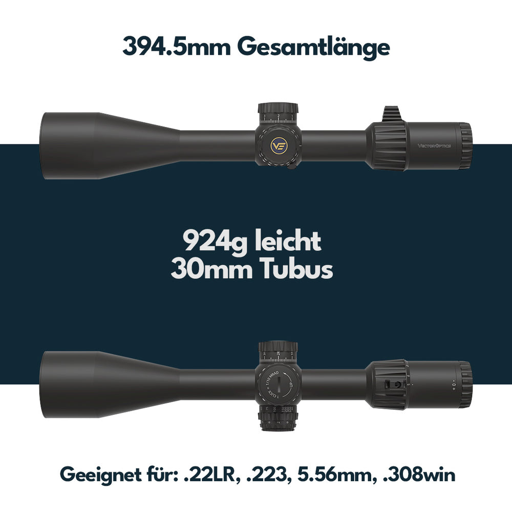 Die Zielfernrohre der Vector Optics Taurus Serie sind ideal für den sportlichen Einsatz sowie für die Jagd. Das MPX1-Absehen befindet sich auf der 1. Bildebene.