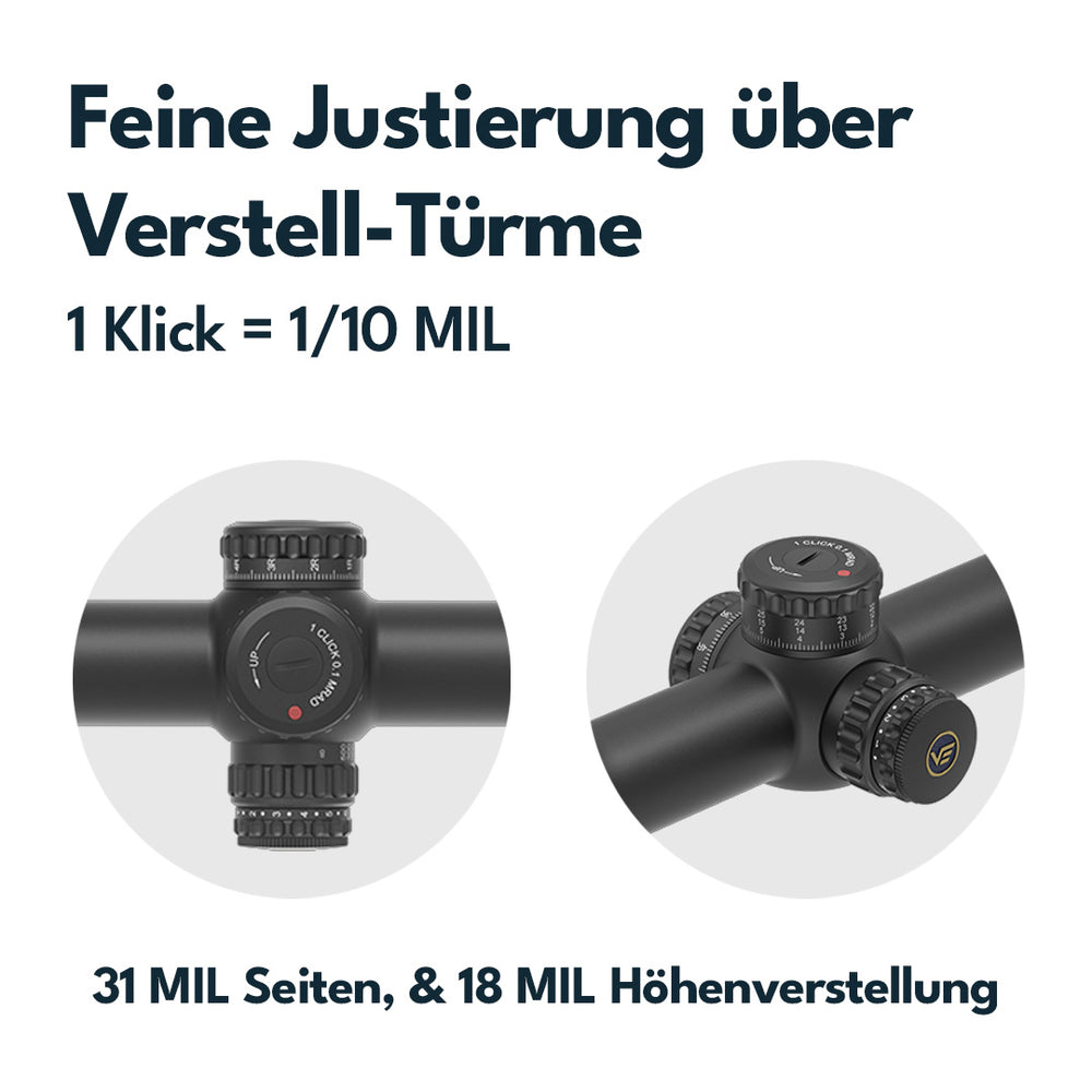 - Turm-Features: Höhenverstellung mit Zero Stop, Seitenverstellung Arretierung