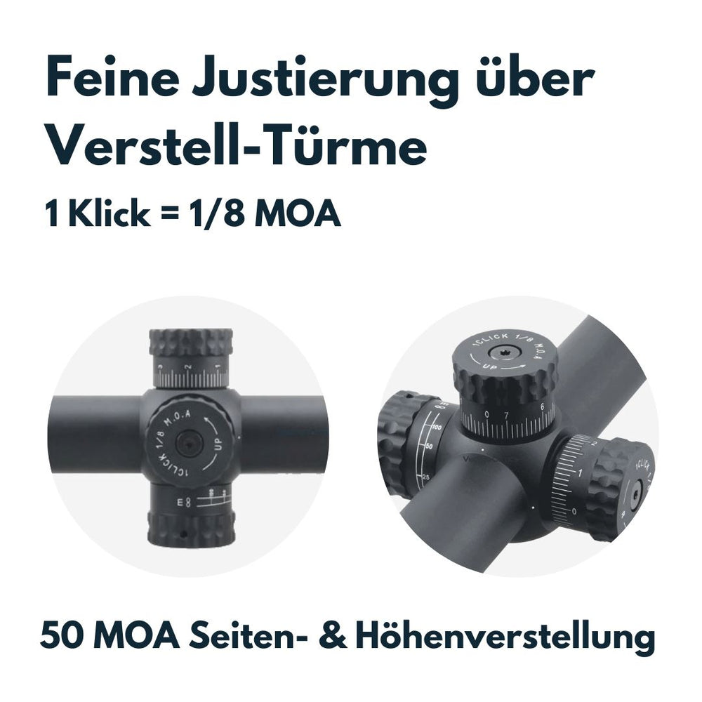- Langer Augenabstand, 30mm Monotube, weites Sehfeld, Turret Lock System