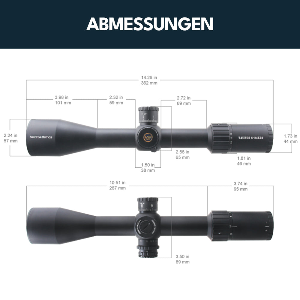 Die Zielfernrohre der Vector Optics Taurus Serie sind ideal für den sportlichen Einsatz sowie für die Jagd. Das MPX1-Absehen befindet sich auf der 2. Bildebene.