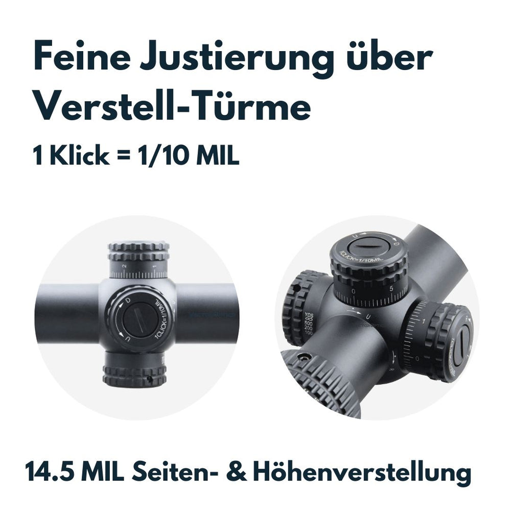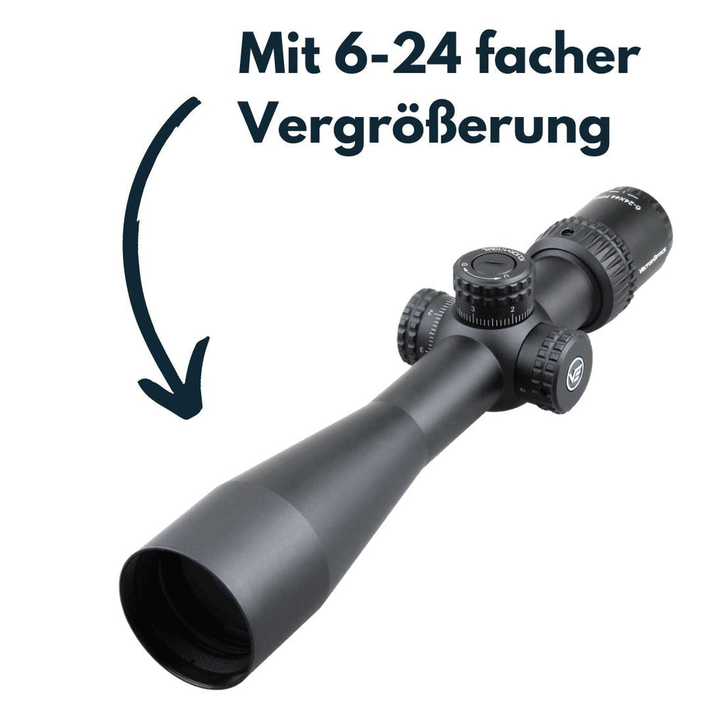 - Vergrößerung: 6-24x auf der 1. Bildebene