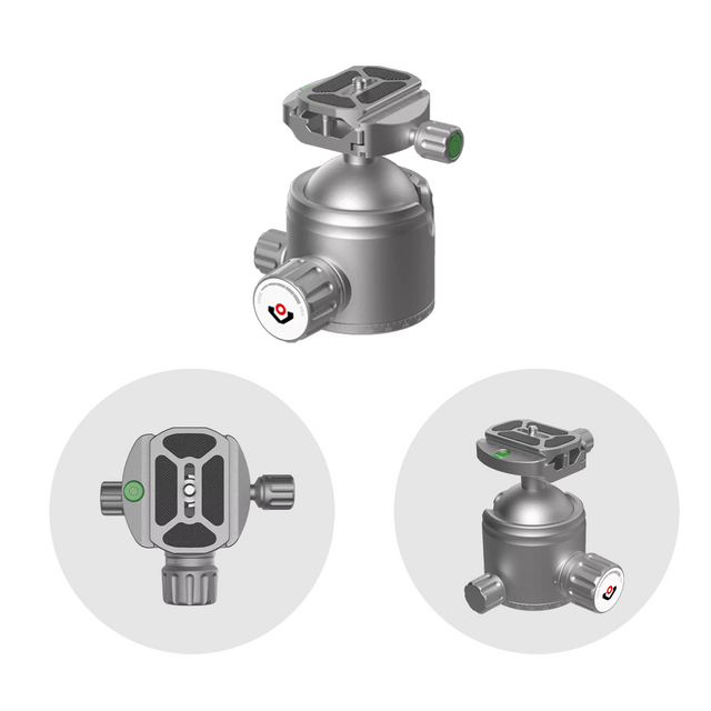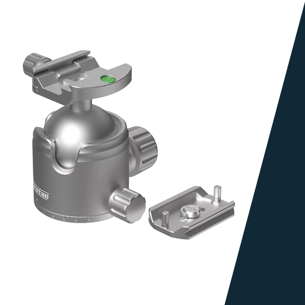 Kugelkopf zur Anbringung auf Stativen, dieser ermöglicht 360° horizontale Drehung und 90° Neigung für eine flexible Positionierung. Passend zum Dreibein RSCF-T01