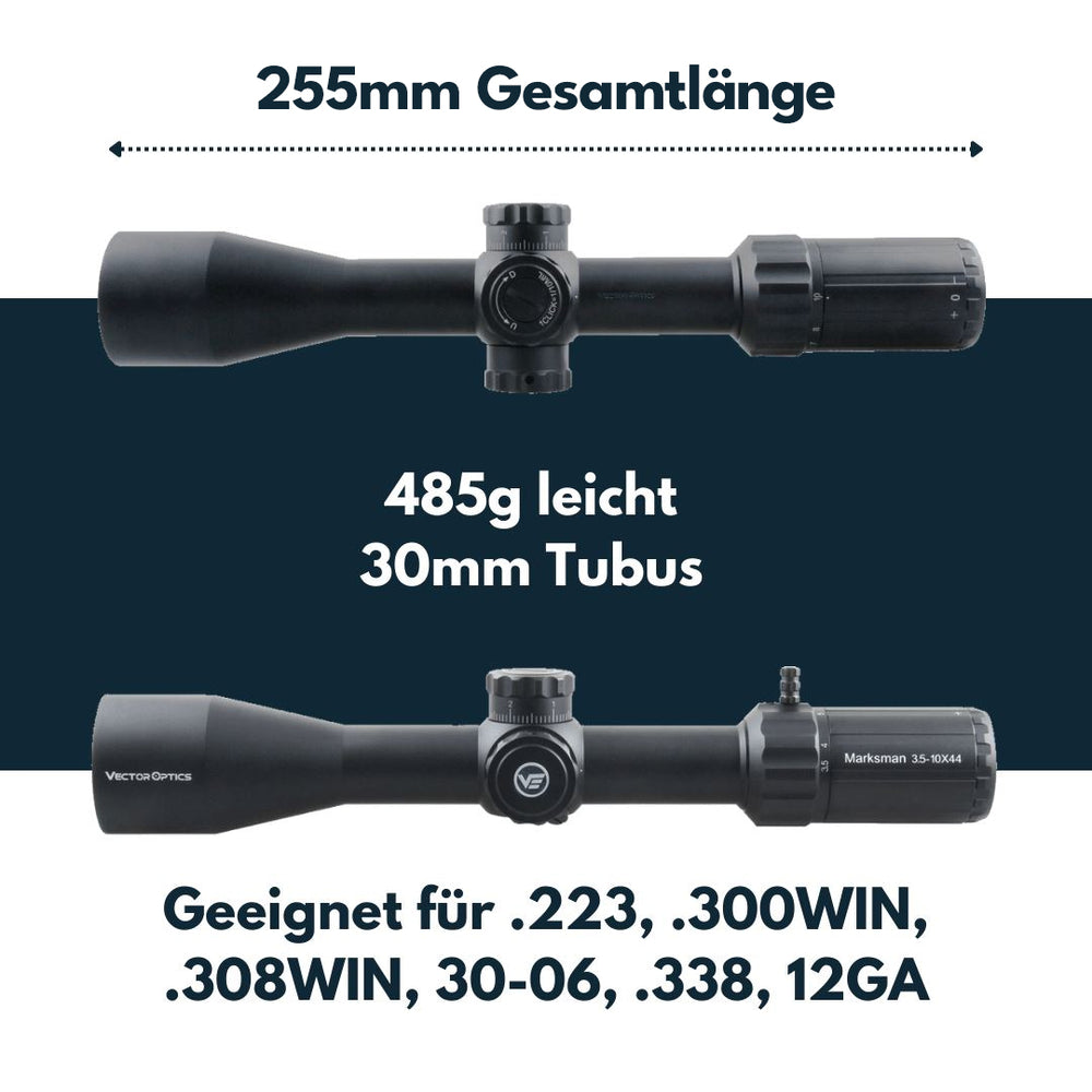 - Geprüft und Schussfest: .223, .300WIN, .308WIN, 30-06, .338, 12GA
