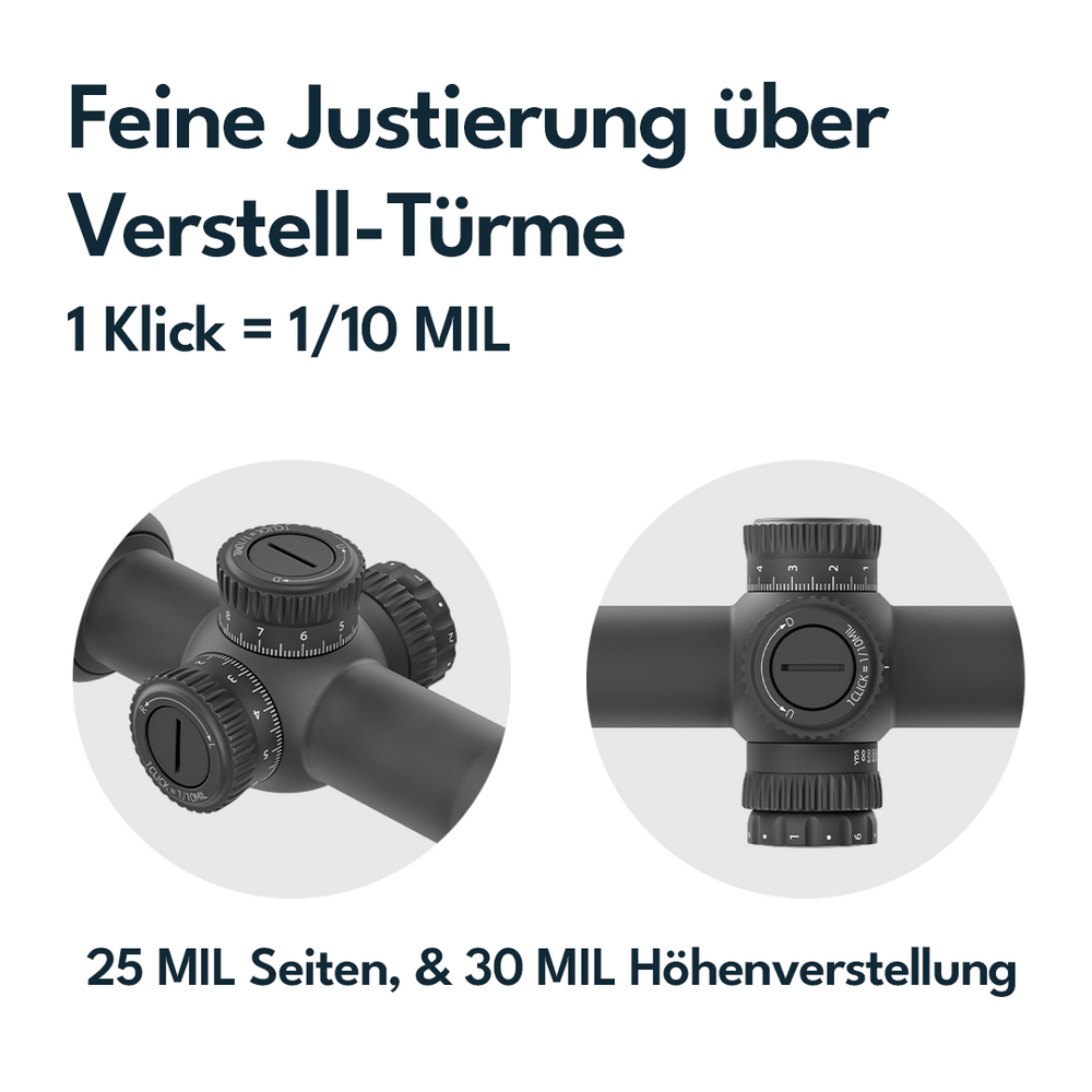 Trotz seiner kompakten Bauweise bietet das Veyron eine erstaunliche optische Klarheit und Helligkeit. Die mehrschichtigen Beschichtungen auf den Linsen tragen dazu bei, ein gestochen scharfes Bild mit lebendigen Farben und minimaler Verzerrung zu liefern. Ob kurze, mittlere oder lange Distanzen, ob mit oder ohne Beleuchtung und mit Absehen auf der 1. oder 2. Bildebene, die Veyron Serie bietet ein hochqualitatives aber kostengünstiges Glas für jeden Einsatzzweck.
