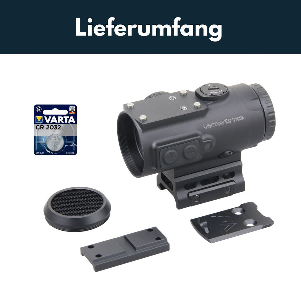 Das SCPS-M04 mit 4x Vergrößerung bietet zudem eine Möglichkeit ein Reddot mit MAG Footprint (RMSc kompatibel) auf der Oberseite zu montieren für den schnellen Wechsel zwischen 1x und 4x Vergrößerung. Kompatible Reddots dazu finden Sie am Ende der Beschreibung.
