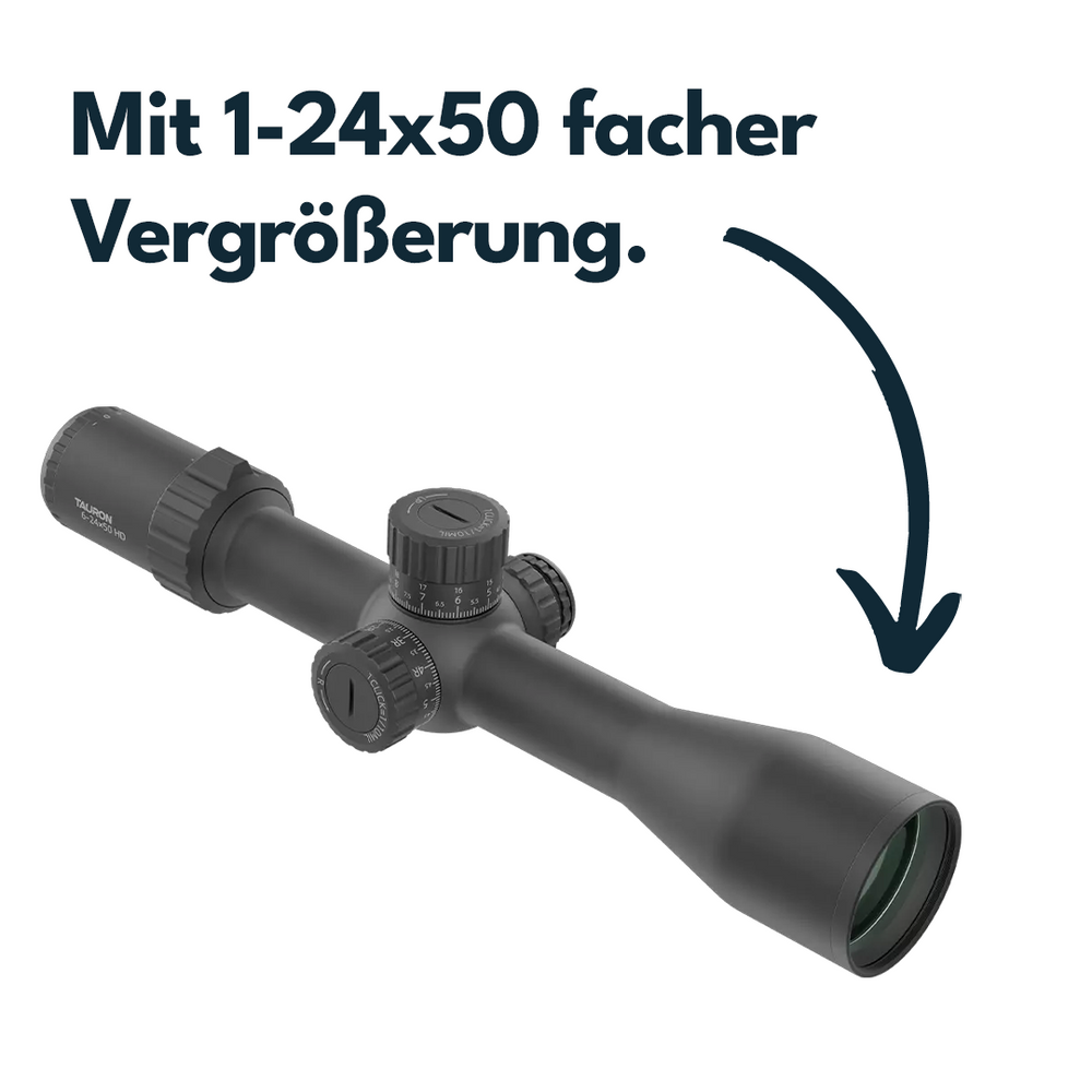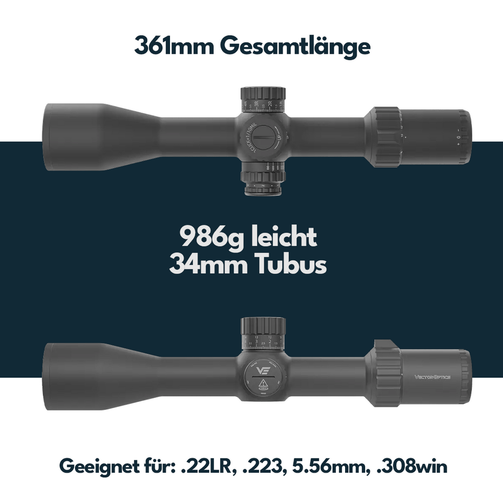 Dieses Zielfernrohr zeichnet sich insbesondere durch seine hochwertigen, Mehrschichtvergüteten Lanthan-Linsen aus, welche für ein Kristallklares Bild mit besonders hoher Farbtreue sorgen. Der 34mm Tubus schafft Raum für einen großen Verstellbereich, außerdem verfügt das Glas über einen Zero-Stop an der Höhenverstellung. Die Türme verfügen über eine feine und deutlich spür- sowie hörbare Klickverstellung.