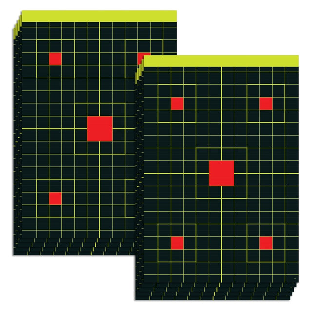Hergestellt aus widerstandsfähigem 10pt-Karton, bieten die Zielscheiben eine hohe Stabilität und sitzen zuverlässig in allen gängigen Zielhalterungen. Das robuste Material minimiert Verformungen und gewährleistet eine lange Lebensdauer, auch bei intensivem Training. Der starke Farbkontrast aus Schwarz, Rot und Neongelb hebt Treffer deutlich hervor und ermögliche ein präzises, effizientes Training - ob mit Pistole, Gewehr oder Airsoft.