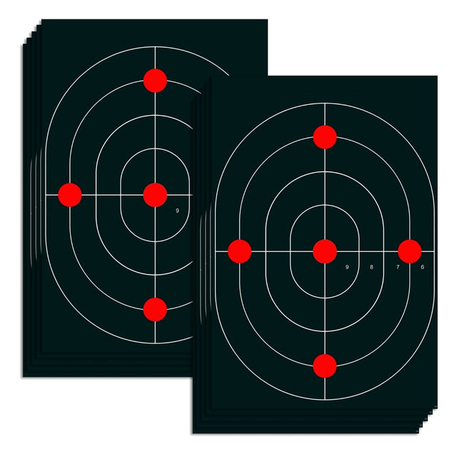 Hergestellt aus widerstandsfähigem 10pt-Karton, bieten die Zielscheiben eine hohe Stabilität und sitzen zuverlässig in allen gängigen Zielhalterungen. Das robuste Material minimiert Verformungen und gewährleistet eine lange Lebensdauer, auch bei intensivem Training. Der starke Farbkontrast aus Schwarz, Rot und Neongelb hebt Treffer deutlich hervor und ermögliche ein präzises, effizientes Training - ob mit Pistole, Gewehr oder Airsoft.